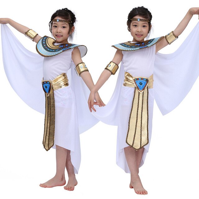 Boy Girl Ancient Egypt Egyptian Pharaoh Cleopatra Prince Princess Costume Children Kid Halloween Cosplay Performance Clothes Set