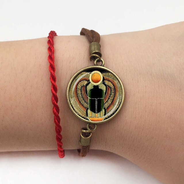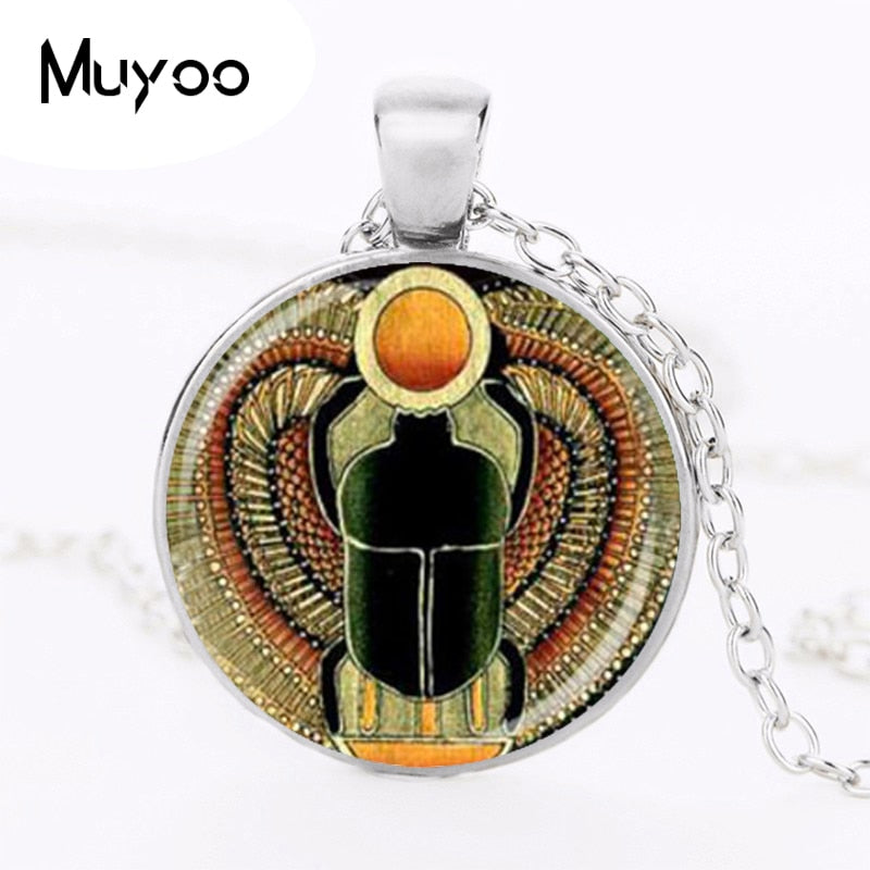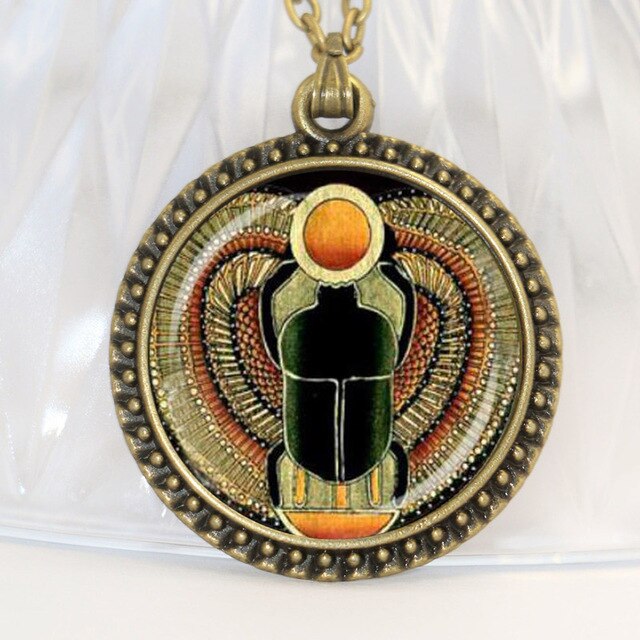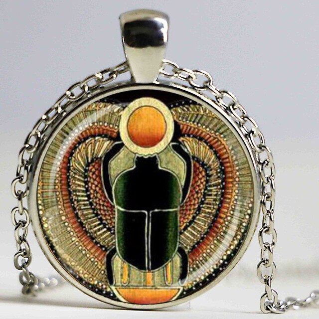 Symbol of Strength Egyptian Scarab Glass Dome Pendant Necklace, Ancient Egypt Jewelry Fashion Charm Women Gift HZ1